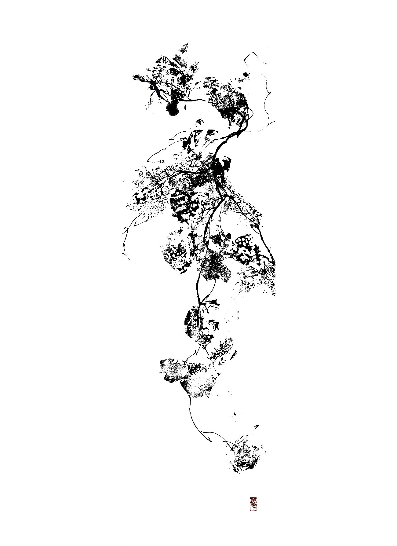 思いも寄らぬ方向へ行っては何かを発見させ、時には原型を留めぬほどに変容し、トライ&エラーを途轍もないスピードで繰り返して、あっと驚くような有機的な反応を引き出し続ける…墨とは、言うなれば生き物のような素材である。